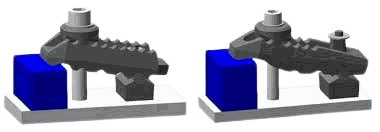 Dado que todas las piezas están unidas de forma cautiva entre sí, este elemento también es adecuado para tareas de sujeción más difíciles, por ejemplo en placas de sujeción inclinadas o verticales, como en máquinas de moldeo por inyección.